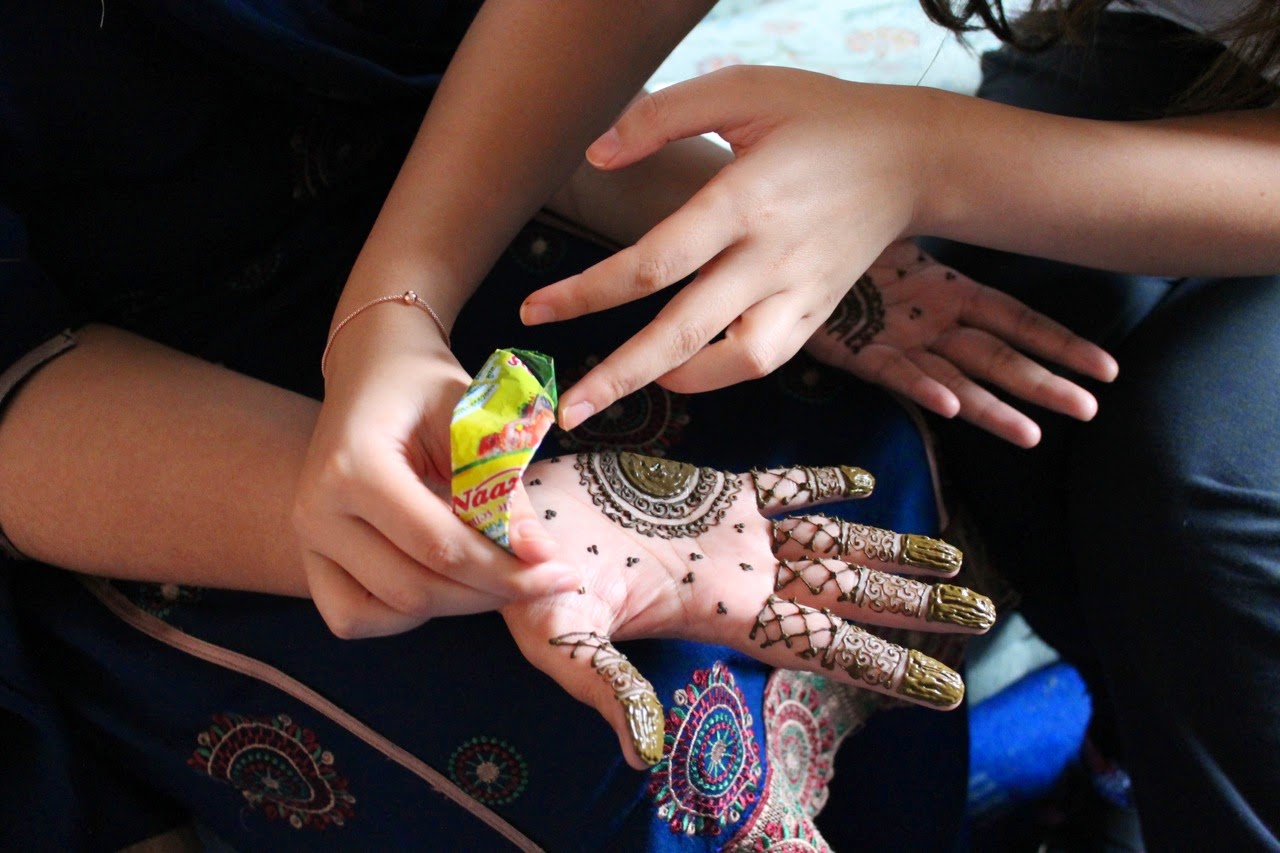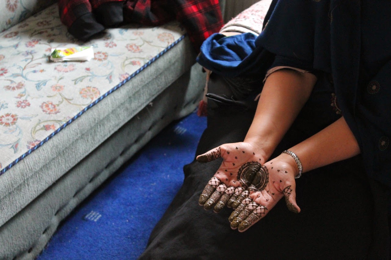 Today she decorated her mother’s hands so, when brought together, they create the image of a full moon. I went along to photograph this - and the photographs that Habiba will use in her finished panels; the full-moon being the larger central panel of the five.