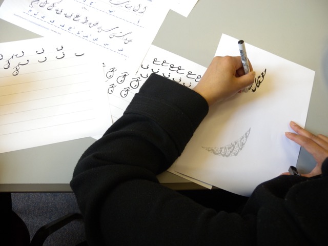 Farzana Patel followed up her calligraphy sessions with young people at the Islamic School with two sessions with the Different Moons Women’s Group at Haslingden Community Link. The final session was last week, and now all of the Different Moons workshops are over, with the exception of 4 additional sessions being held with Year 6 at St Mary’s C of E School in Rawtenstall.