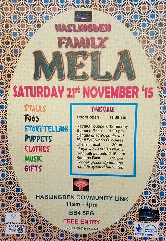 But over the next few months, whilst the Apna is closed and work is being undertaken, the Different Moons team will continue working in Haslingden. The next big event is the Family Mela at Haslingden Community Link on Saturday 21st November with a whole range of exciting stalls arranged by Habiba Shenza; puppetry shows for everybody - but especially children and young people; special live music in a side room, and food for all to enjoy!