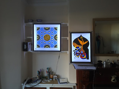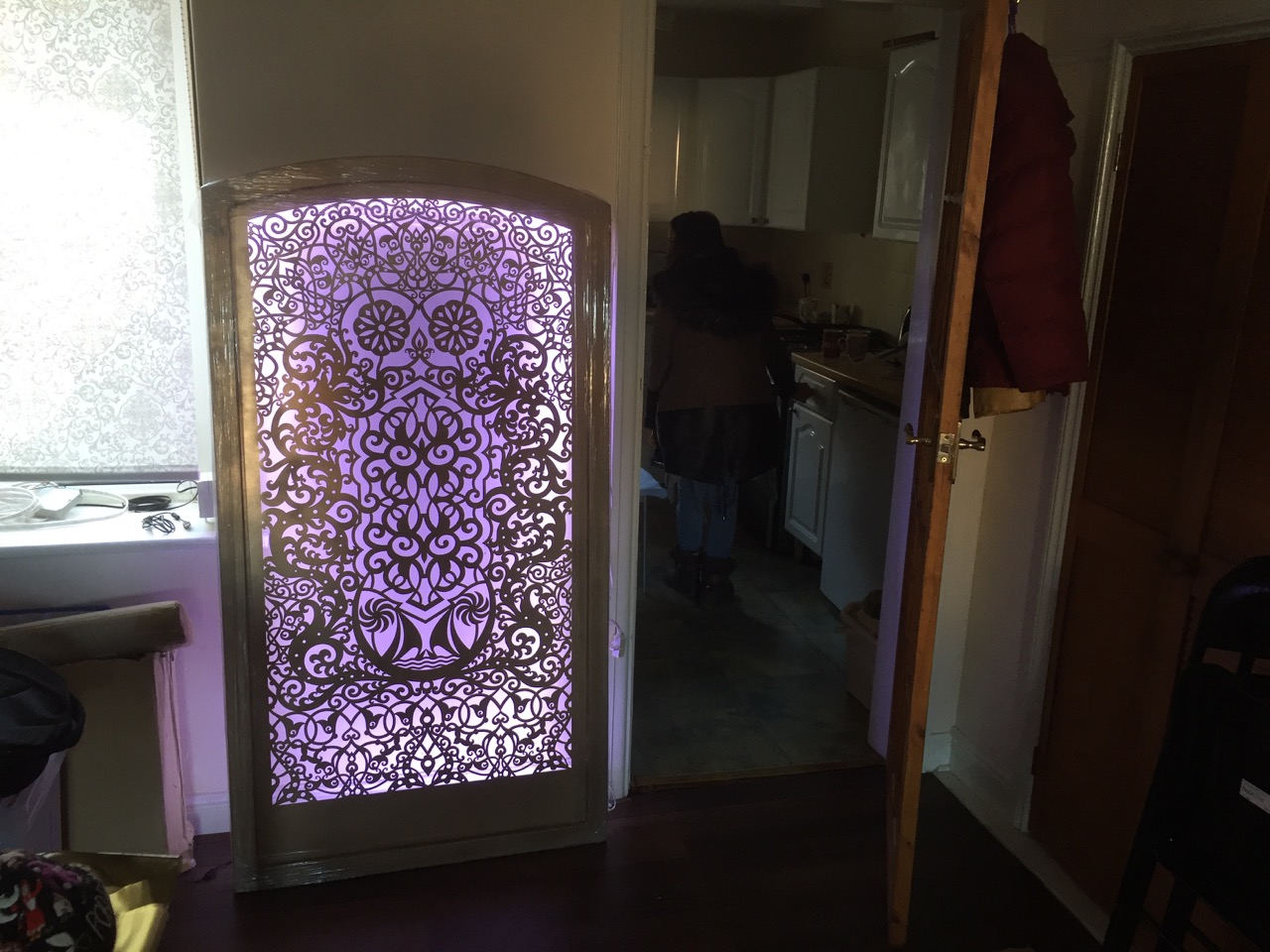 While we’re waiting for the completion of the Apna refurbishment there’s still much to do. On Friday we visited Maryam Golubeva to return some of her gold paper cuts that we’re had since the Apna closed. Sad to see these go back home, but it’s always a pleasure to visit Maryam’s house in Lancaster and see her work (photos).