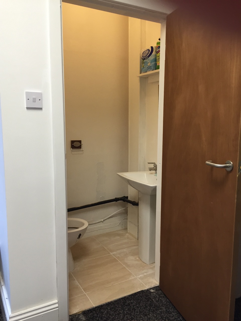 Proof that we’re almost ready to open - and that the Apna is now fully equipped with heating, toilets and a store room! Above Arry Nessa inspects the work….
