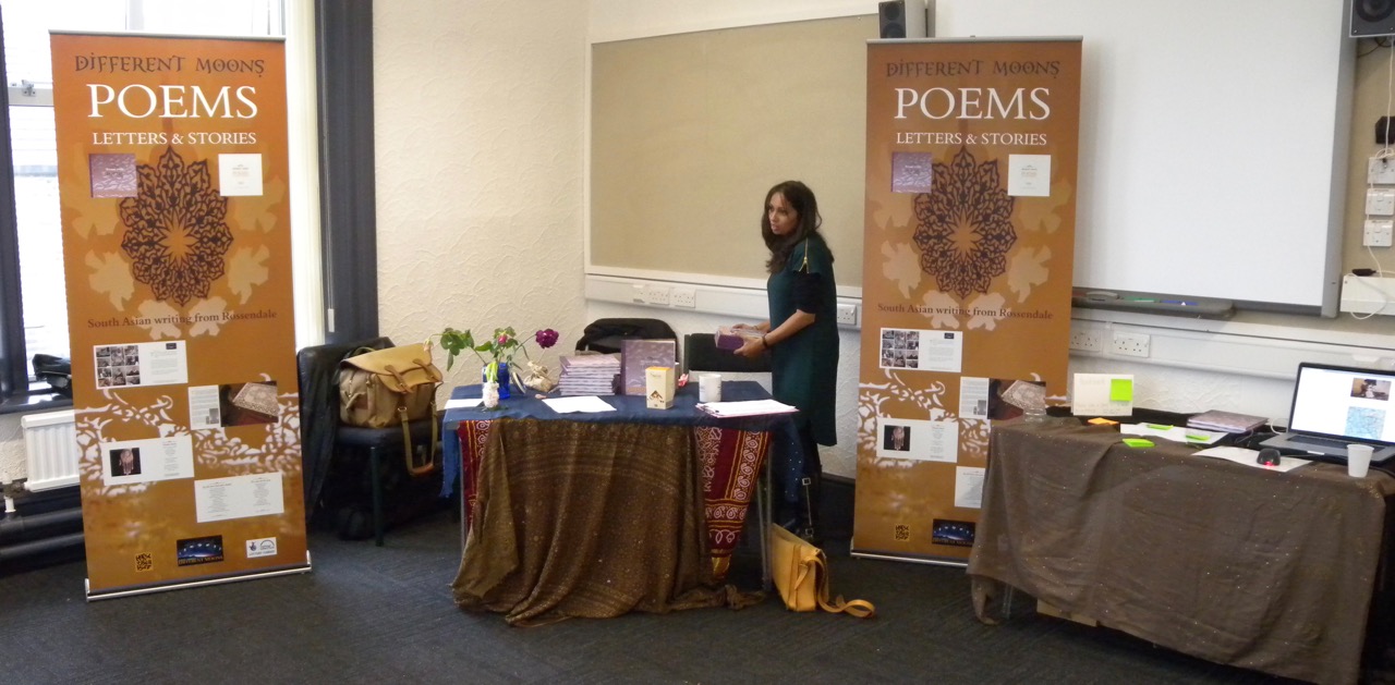 Yesterday was a big, big day! The Different Moons book was launched at Haslingden Library with readings, food and good spirits. The book is a lovely 100 page hard-back, illustrated volume, containing over 60 poems by local people - mainly girls and women, and almost all from the South Asian communities.